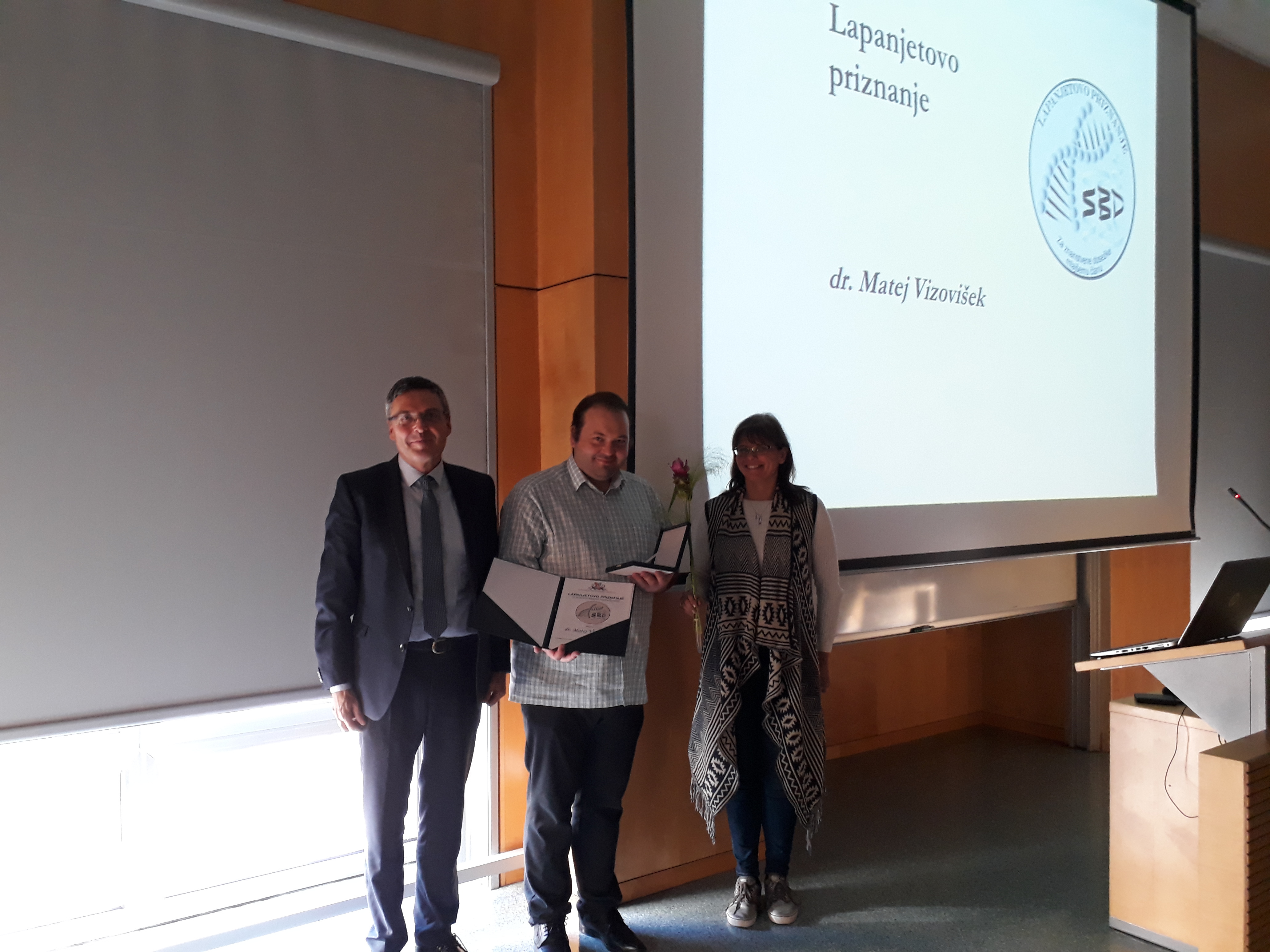 Dr. Matej Vizovišek je kljub svoji mladosti z mednarodno uspešnim in pionirskim raziskovalnim delom na področju proteomike in degradomike pomembno prispeval k razvoju slovenske biokemijske znanosti in zato mu Slovensko biokemijsko društvo podeljuje Lapanjetovo priznanje.